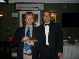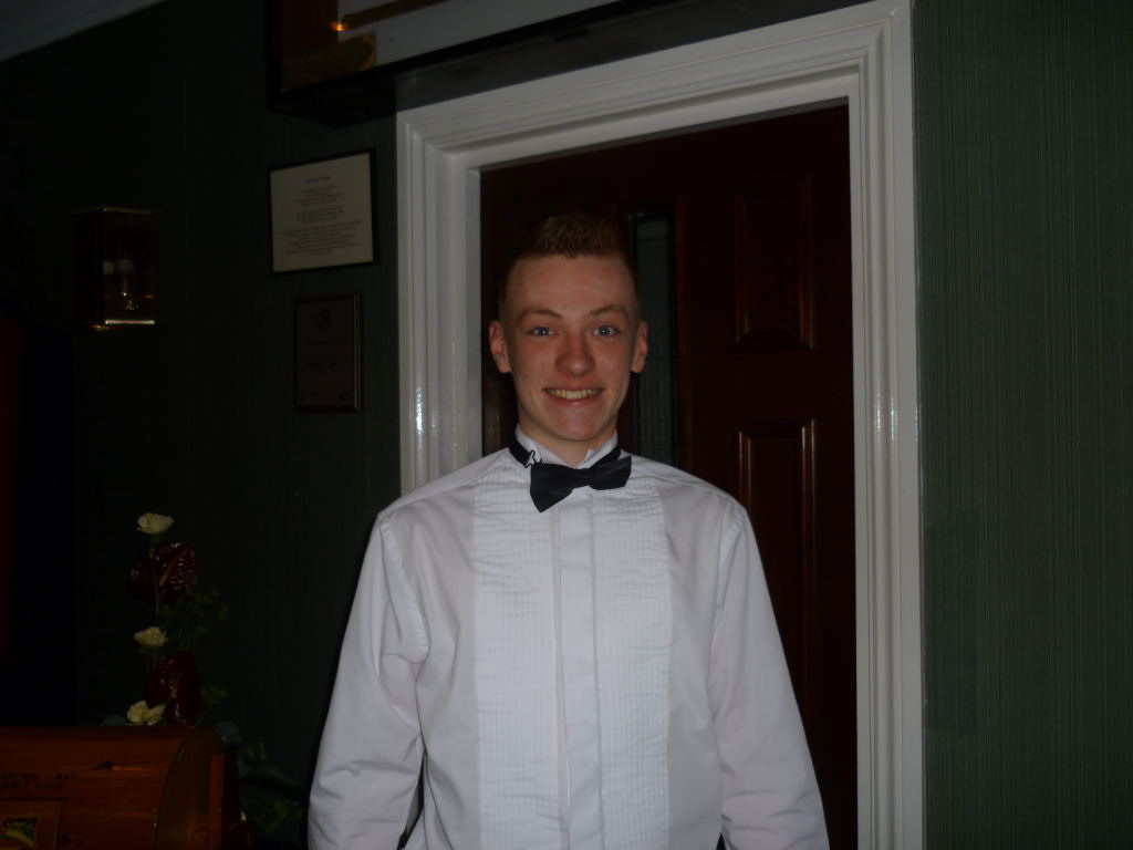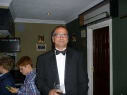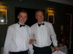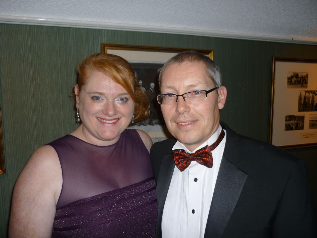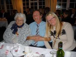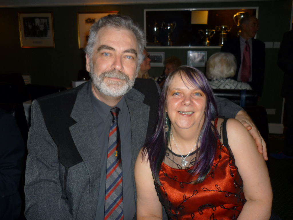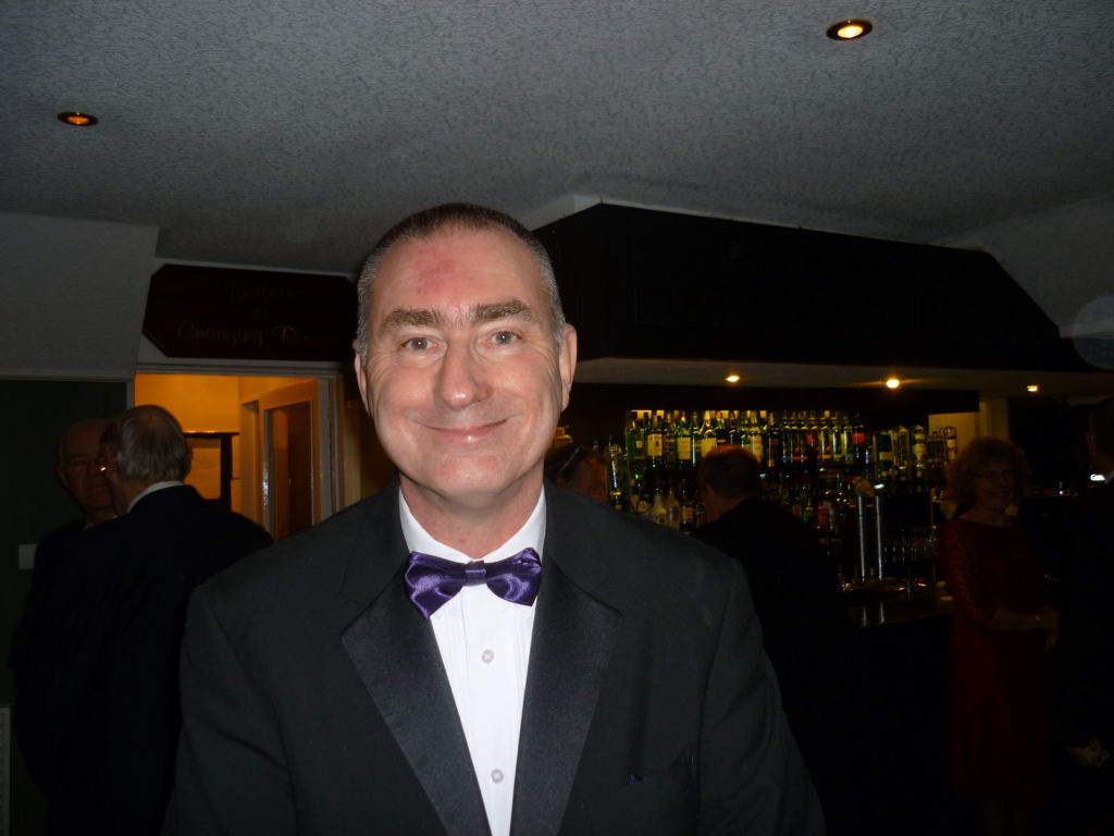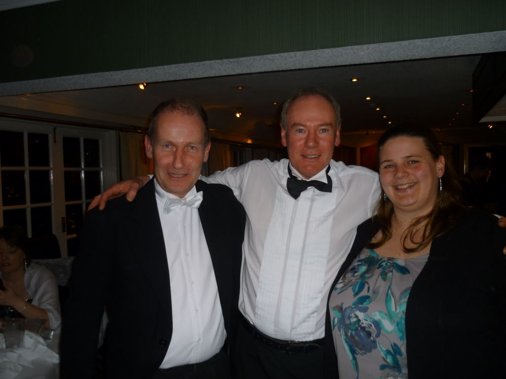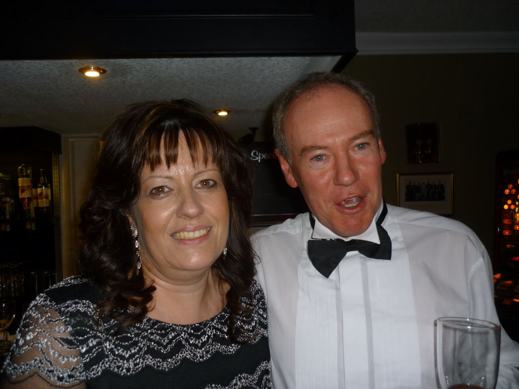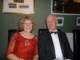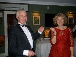 Outside, the weather was rather cold and bleak with spots of rain coming down and it was with some relief that we all made it to the warm comforts of the Carlyon Bay Golf Club house. It’s inevitable that whenever a function is organised that some regulars are unable to make it and unfortunately this cut our numbers tonight to 41, but having said that the venue was very comfortably filled. Once again many Ladies and Gentlemen had gone to the trouble of dressing very impressively for the function of the year and a very enjoyable function it was. Our numbers were swelled somewhat when The Austins and Niles joined us at the Prizegiving stage. They arrived from a previous engagement of a 40th Birthday party and were well into the party mode when our disco burst into life.